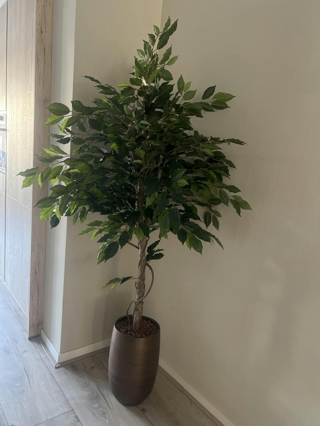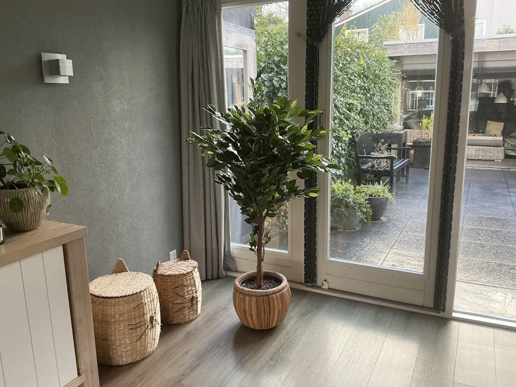 Onze kunstplanten zijn haast niet van echt te onderscheiden. We gebruiken hoogwaardige polyester, terwijl de stammen van echt hout zijn, wat zorgt voor een zeer natuurlijke uitstraling. Twijfel je toch nog over de kwaliteit? Bezoek dan gerust onze showroom om ze zelf te bekijken!