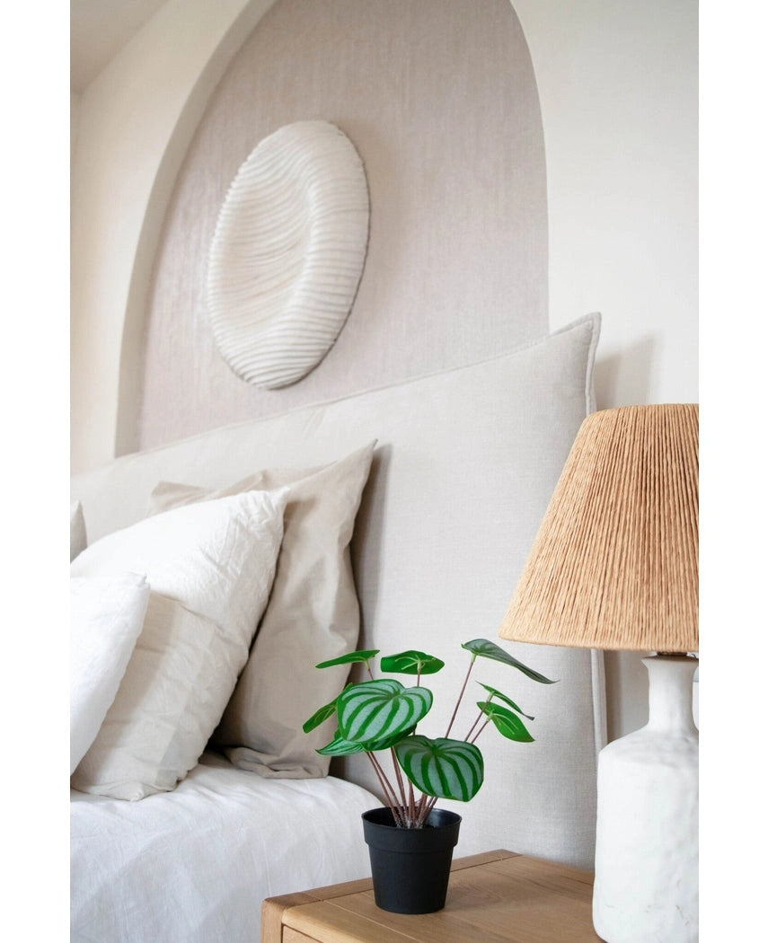 Haal de kunstplant voorzichtig uit de verpakking. Let op eventuele bevestigingsmiddelen, zoals ritssluitingen, touwtjes of banden, die de plant tijdens het transport op zijn plaats houden en verwijder deze zorgvuldig. - Voorbereiden van de basis