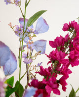 Amethyst Romance is een zijden boeket dat de taal van tederheid spreekt. Met een palet van zachte roze, paarse en witte tinten straalt dit arrangement een verfijnde rust uit, perfect voor wie houdt van romantiek met een moderne twist. De combinatie van bloeiende vormen, subtiele geurassociaties en natuurlijke bladstructuren maakt dit boeket tot een tijdloos decoratief statement.